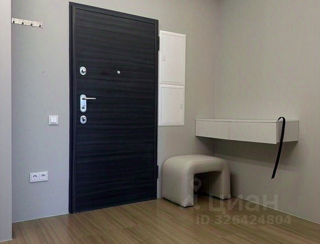В прихожей расположен очень вместительный шкаф-купе. Диван в прихожей также оснащен достаточно вместительным местом для хранения.