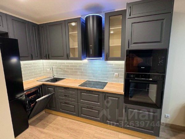 - бытовая техника (плита с духовым шкафом Bosch, вытяжка, холодильник Bosch);
