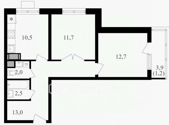 От года, комм. платежи включены (без счётчиков), без комиссии, залог 95 900 ₽