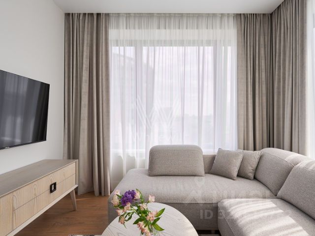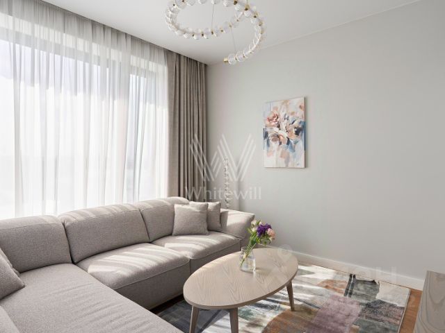 Предлагается в аренду 2-комнатная квартира 4061 с евро планировкой (кухня-гостиная + 1 спальня) с лоджией (5,3м2), высокими потолками площадью 56 м2, расположенная на пятом этаже нового арендного дома класса Матч Поинт. Окна апартаментов выходят на улицу Василисы Кожиной. Современный эргономичный дизайн, мебель европейского производства, вся необходимая техника, разработанная с использованием умных технологий. Просторная кухня-гостиная оснащена встроенной техникой фирмы Hotpoint: 2-х камерным холодильником, варочной 4-х комфорочной панелью, духовым шкафом, посудомоечной машиной и вытяжкой. При входе в апартаменты вместительная гардеробная комната (3,6 м2), пуф, массив которого выполнен из бука и хвойных пород, материал обивки - ткань "гусиная лапка", панель вешалка. Зона кухни оборудована комплектом кухонной мебели с белыми деревянными фасадами, стильной барной стойкой и барными стульями на две персоны. В апартаментах предусмотрены два спальных места: в гостиной двуспальный раскладной диван (190 см * 150 см, механизм "еврокнижка", тканевая обивка Casain piain); в спальне большая кровать (180 см *200 см) с мягким изголовьем и матрасом, выполненным из бельгийского материала с ортопедическим эффектом. Благодаря 5-ти зональному пружинному блоку матраса Ваш позвоночник будет получать превосходную поддержку. Помимо кровати в спальне из мебели есть прикроватные тумбочки со стильными подвесными светильниками над ними, шкаф с белыми премиальными глянцевыми фасадами и зеркалами (вся мебель фирмы Permo, Италия). Чтобы ничего не отвлекало от здорового сна - плазменный TV от Panasonic с TV тумбой дизайнеры разместили в гостиной. Для Вашего комфорта в каждой комнате установлен кондиционер. На окнах помимо тюли есть портьеры Design&Colors, SOLKLIMA DESEN. Совмещенный санузел оборудован ванной и раковиной, вместительной и удобной в использовании стиральной машиной, большим зеркалом с подсветкой.
