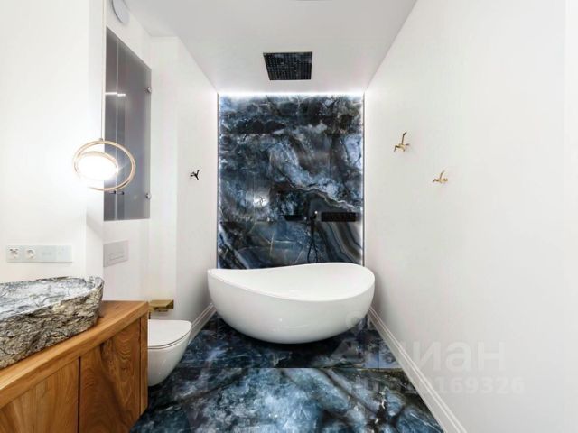 Интерьер выполнен в минималистичном современном стиле: пастельные оттенки, аккуратный декор и качественная мебель создают спокойную и гармоничную атмосферу. В спальне — удобная двуспальная кровать, отдельная гардеробная и рабочее место с видом на лес.