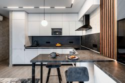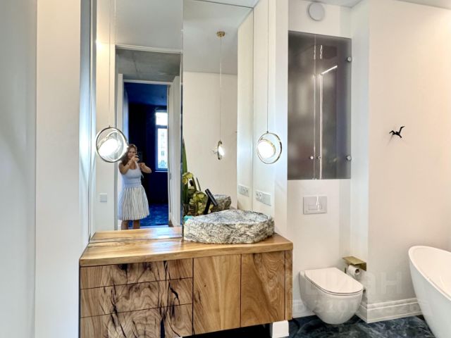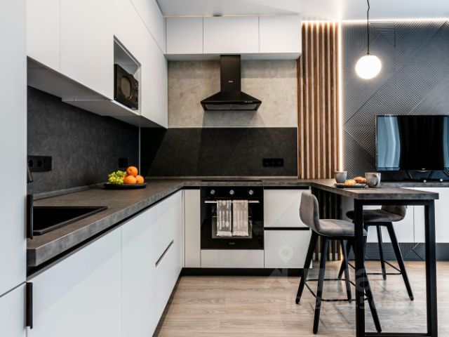 Просторная кухня-гостиная идеально подойдет для уютных вечеров и встреч с друзьями: стильная обеденная зона и диван с телевизором формируют комфортное пространство для отдыха. В прихожей — зеркало в полный рост и туалетный столик. Ванная комната оформлена в природных оттенках, с подсветкой и тропическим душем — отличное место, чтобы расслабиться после рабочего дня.