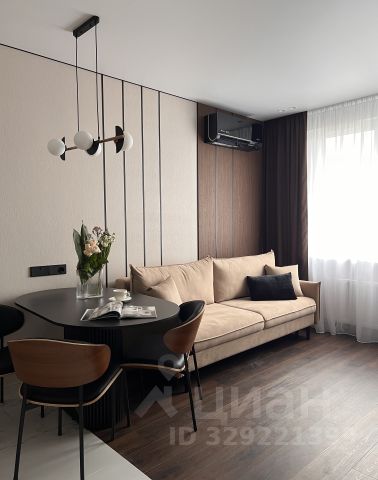 Интерьер квартиры выполнен в современном минималистичном стиле: светлые пастельные оттенки, аккуратный декор и продуманная планировка создают спокойную и уютную атмосферу. Из окон открывается приятный вид на лес.