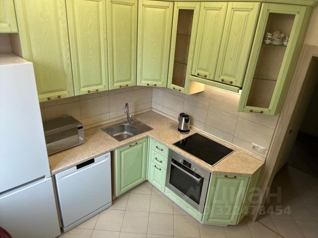 Гостиная и кухня со всем необходимым оборудованием в первом этаже. Спальня с широкой кроватью и встроенным стеллажом для личных вещей - во втором этаже. Стильно оформленные зоны для работы и отдыха, органично вписанная кухонная зона. В кухонную панель встроены посудомоечная машина, и холодильник. Электроплита оснащена духовым шкафом и вытяжкой. Имеется электрогриль.
