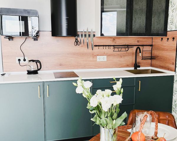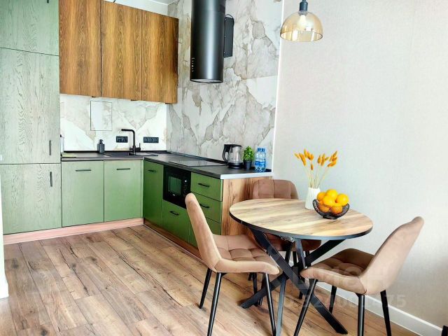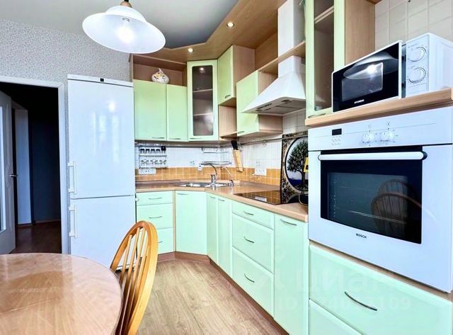 - встроенный кухонный гарнитур с бытовой техникой ( элетрическая варочная панель, духовой шкаф, посудомоечная машина, вытяжка, холодильник двухкамерный, чайник),