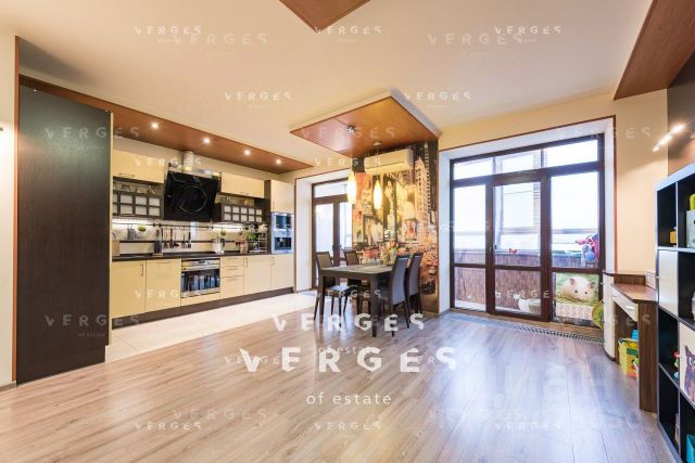 Территория дома ограждена шлагбаумами, тихий зеленый двор с детскими и спортивными площадками.