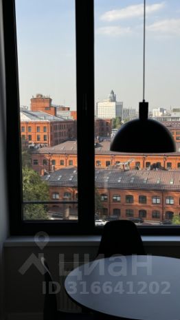 Витражное окно с видом на Москву-Сити, реку и МГУ.