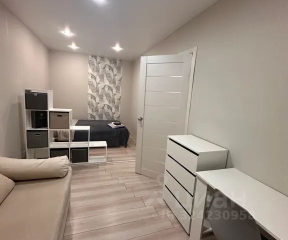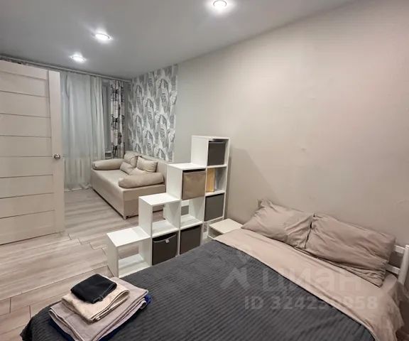В жилой комнате комнате имеется кровать 140*200 с удобным матрасом, а также диван-кровать , который можно разложить при необходимости, большой телевизор и просторный шкаф, где разместятся все ваши вещи и чемоданы. В шкафу вы найдете книги, утюг с гладильной доской и достаточное количество вешалок. Рядом с кроватью и диваном имеется индивидуальное освещение.