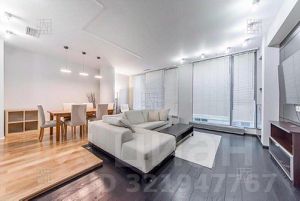Планировкой предусмотрены: гостиная-кухня-столовая, мастер-блок, вторая спальня с собственным с/у, постирочная и гостевой с/у. Из окон квартиры открываются завораживающие виды на Сити, МГУ, гостиницу Украину, Москва-реку.