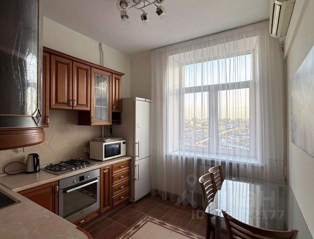 Сдаётся 1 квартира. Просторная кухня площадью 15 кв. м оснащена всей необходимой мебелью и техникой: кондиционер, холодильник, стиральная машина и телевизор. От метро 2 мин пешком