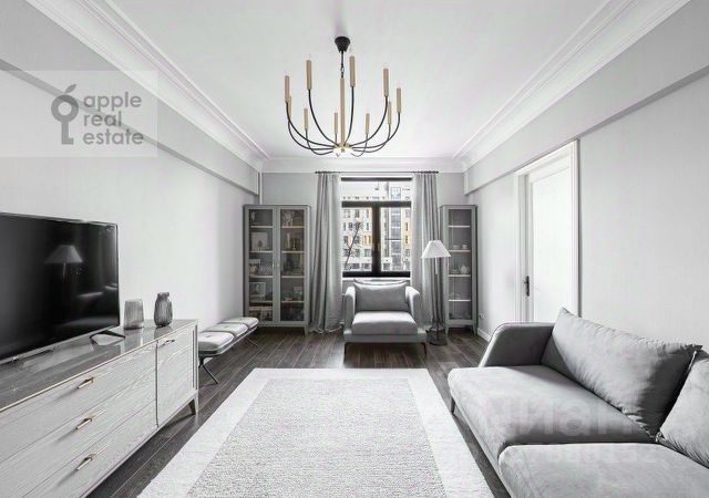 Уютная круглая гостиная (зал): Сердце квартиры с электрокамином (эффект живого огня), огромным раскладным диваном, полукруглым телевизором и аудиосистемой. Три окна: вид на ВТБ Арена и тихий двор.