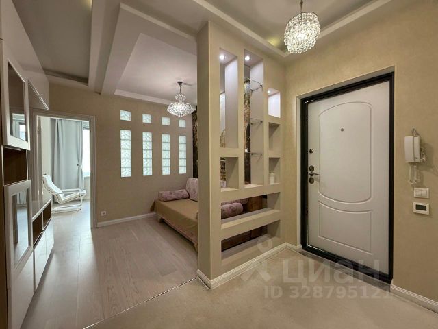 Сдается впервые стильная, современная, медийная 85 кв.м. трёхкомнатная квартира премиум класса с дизайнерским ремонтом, домашним кинотеатром, объёмным звуком, круговой шумоизоляцией в спальнях и зоной релакса. Квартира оборудована двумя полноценными органичными сан. узлами (один с душевой, другой с увеличенной ванной, подсветками, широкоформатной плиткой, тропическим душем), массажным креслом, двумя гардеробными, 3 шкафами в коридоре, большой рабочей зоной в детской и отдельной рабочей зоной для взрослых в спальне, просторной кухней-гостиной с огромной п-образной кухней, большим двухдверным холодильником и функциональной барной стойкой и стульями.