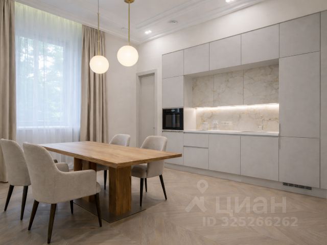 Звоните! Показываем оперативно, каждый день, до 29 декабря и потом уходим на каникулы! Трёхкомнатная 108 м² плюс крытая терраса 50 м². Общая площадь 158 квадратных метров! Новый современный минимализм, в квартире никто после ремонта не жил, вы будете первыми. Четвёртый этаж, окна строго во двор, внутри тишина и ровный свет. Терраса закрывается прозрачными автоматическими роллетами. Летом это открытая веранда за минуту, зимой здесь комфортно посидеть и покурить, есть инфракрасные обогреватели. Продуманная планировка. Спальня с остекленной гардеробной - 22 м. Кабинет 16 м со своим выходом на террасу, диваном и стеллажами. Кухня и гостиная около 58 м объединены с коридором в одно большое пространство. Два санузла: десятиметровый с окном, ванной и душевой кабиной, и второй на четыре метра с душевой. Отдельная постирочная с системой хранения, стиральной и сушильной машинами и технической мойкой для сильно загрязненных вещей. Кухня полностью укомплектована техникой и посудой. Телевизор 75 дюймов уже на месте. По всей квартире бесшумная сплит система, интернет МГТС заведён, тариф выбираете сами. Курить можно только на террасе, где оборудованы три комфортные зоны с комфортной мебелью. Дом камерный, индивидуальный проект 2005 года, монолит, всего пять этажей. ТСЖ (хозяева квартир собственники дома и окружающей территории). Консьерж круглосуточно. Своя придомовая территория за шлагбаумом. Подземный паркинг с машиноместом входит в цену, во дворе есть гостевые места. В доме независимое горячее водоснабжение, летних отключений не бывает. Соседи состоятельные, аккуратные и взыскательные к порядку, уборка в подъезде ежедневно, шумные вечеринки запрещены. Если шум всё же нужен, его можно согласовать с председателем правления, он живёт этажом ниже и очень доброжелателен. Условия простые. Без детей и без кошек, с собаками готовы обсуждать. Квартира полностью укомплектована всем необходимым для быта, заезжаете сразу. Стоимость 450 000 в месяц, машиноместо включено, сверху оплачиваются счётчики и интернет. Локация центральная и удобная, вокруг десятки кофеен, ресторанов, магазинов, до Кремля примерно один километр. Показы по записи, ключ у нас.