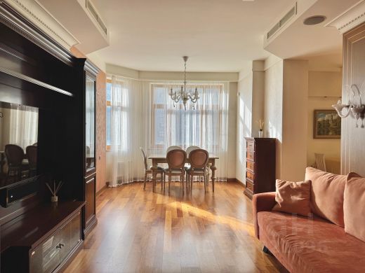 Лот 554483. Бонус коллегам 50% Предлагается светлая трехкомнатная квартира в элитном доме, в ЖК Доминион. Планировка: кухня-гостиная, спальня, детская/кабинет, совмещенный с/у с ванной, совмещенный с/у с душевой. Общая площадь: 95 кв.м. Потолки 3,2 м. Ремонт в современном стиле. Квартира полностью мебилирована, оснащена встроенной бытовой техникой, включая кофемашину. Дизайнерский свет: Flos Skygarden. Мебель от премиальных европейских брендов: кровать, диваны, вместительные шкафы, а также легендарные стулья Verner Panton. Сантехника Villeroy & Boch, элитные двери Rimadesio. Профессиональная аудиотехника объёмного звучания. Интерьер продуман до мелочей, предусмотрено множество мест хранения. Охраняемая территория комплекса. Машиноместо в подземном паркинге возможно арендовать за отдельную стоимость. В квартире: Полностью меблированная, Посудомоечная машина, Стиральная машина, Спутниковое/кабельное телевидение, Охрана, Интернет, Можно с детьми, Интерьер в современном стиле, Лифт, Мебель в комнатах, Телевизор, Мебель на кухне, PLEASE DO NOT HESITATE TO CONTACT US. Номер объекта: #1/554483/13367