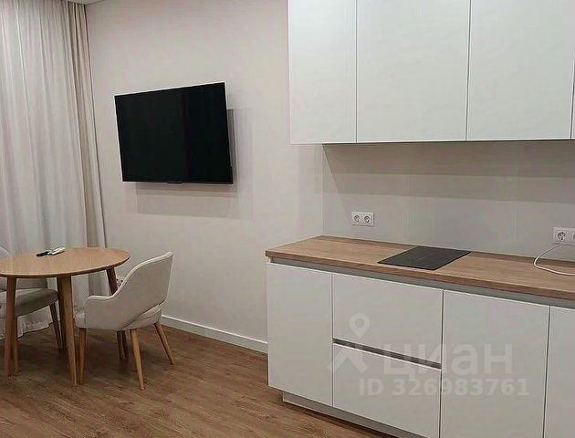 Добротная встроенная кухня, оборудованная техникой: варочная поверхность, вытяжка с подсветкой, электрический духовой шкаф, микроволновка, чайник, 2-хкамерный холодильник. Раскладной стол, 4 стула.