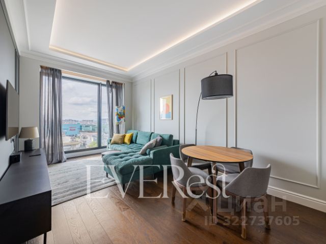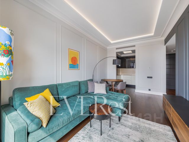 Планировкой предусмотрены: гостиная-кухня-столовая, мастер-блок, вторая спальня с собственным с/у, постирочная и гостевой с/у. Из окон квартиры открываются завораживающие виды на Сити, МГУ, гостиницу Украину, Москва-реку.