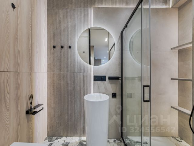 Вас будут окружать лоск и только качественные материалы: паркетная доска, керамогранит, мраморные подоконники, столешница кухни и острова из кварцита, высокие двери из массива дуба. Шикарный обеденный стол, рабочий стол и полки на балконе из массива дуба с живым краем.