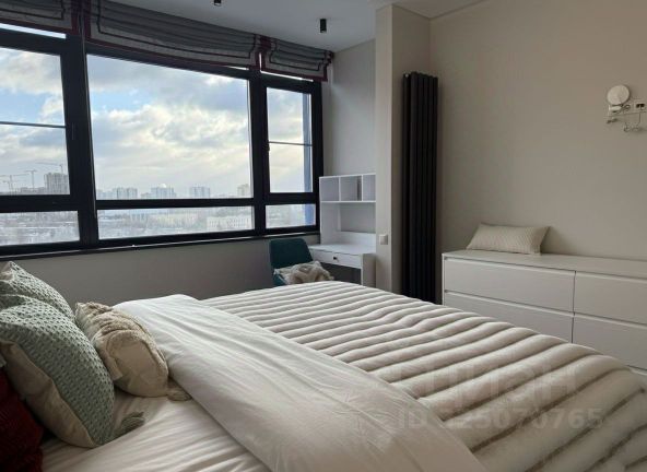 Окна гостиной выходят в лоджию, можно открыть и объединить помещения, вид на Москва - Сити, Поклонную гору и МГУ.