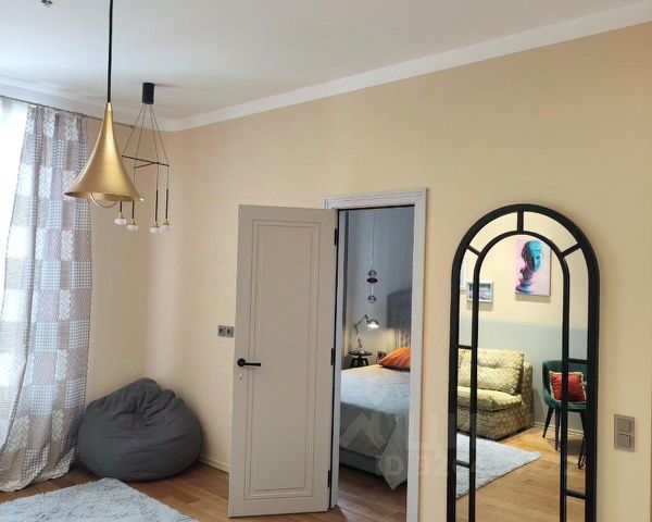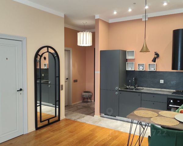 Общая площадь составляет 32 кв. м, жилая площадь — 22 кв. м, кухня — 6 кв. м. Высота потолков — 2.6 метра. Окна выходят во двор, поэтому вас не будут беспокоить шумные улицы.