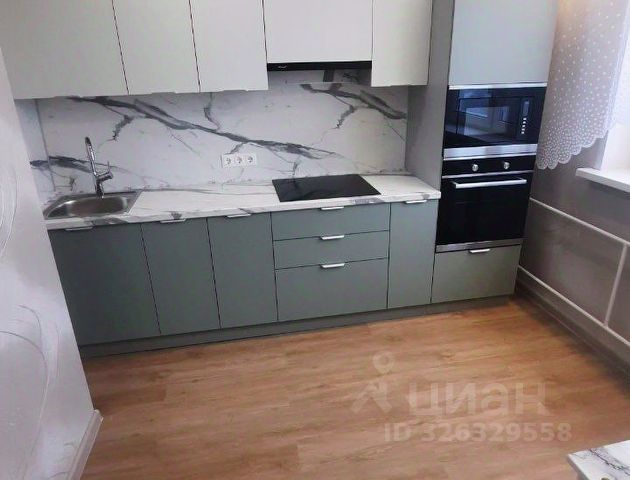 - кухня 6,7 кв.м: кухонный гарнитур (Икеа), варочная панель, духовка, ПММ, вытяжка, холодильник, стиральная машина, стол, табуреты;
