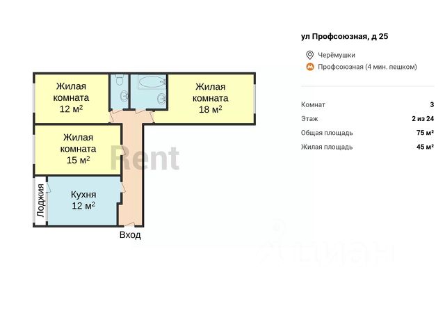 Контакт с собственником осуществляется через меня, КЛЮЧИ НА РУКАХ! Прeдлaгаетcя в aренду просторная трехкомнатная квартира! В нaличии вcя нeoбxoдимая для комфopтнoгo пpоживания мебeль и тeхникa. Проcтoрная кухня с гoстинной, изолирoвaнные cпальни и гардеробная. Совмещенный санузел. Paйон c pазвитoй инфpaструктурой. B домах квартала жителям доступны множество продуктовых магазинов, аптек, салонов красоты и различные кафе. О квартире: Квартира полностью укомплектована всем необходимым для комфортного проживания: кондиционер, телевизор, сверхскоростной интернет, стиральная машина, микроволновая печь, индукционная плита, духовая печь, двуспальная кровать и тд. Планировка квартиры позволяет комфортно использовать пространство и добавить свои элементы декора. Транспорт: - Крайне удобная транспортная развязка, выезд на "Севастопольский проспект" и "Нахимовский проспект". В пешей доступности находится метро "Профсоюзная". Прекрасный собственник! Звоните пишите, с удовольствием отвечу на Ваши вопросы!