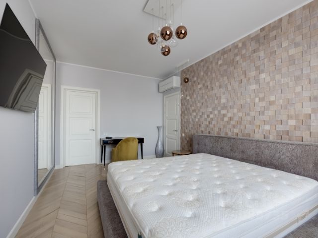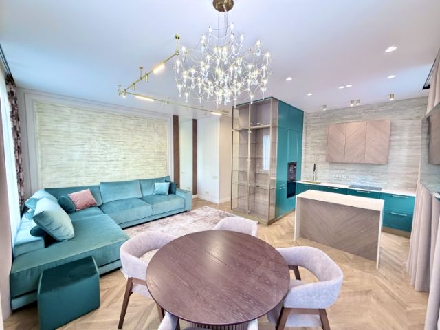 Впервые сдаётся трёхкомнатная квартира с дизайнерским ремонтом — никаких вложений и доработок, можно въезжать и сразу жить. Жилая площадь 60 м², кухня 18 м², два совмещённых санузла: с ванной и душевой.