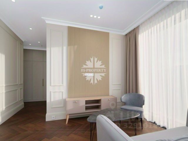 Интерьер в спокойной современной классике из качественных материалов, с продуманным светом и аккуратными формами, но остаётся нейтральным — вы легко добавите свои акценты. Прихожая встречает консолью и зеркалом, уже с порога открывается вид на город и Москву-реку. За акцентными дверями — гардеробная с полками, ящиками и местами для сумок и обуви.