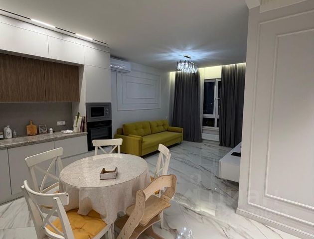 Евротрешка 70м² после ремонта, сдается впервые. Закончился ремонт в новой квартире, расположенной в ЖК Руставели-14 в 400 метрах от метро Бутырская. Заселение с апреля, точная дата обсуждается. Срок — от нескольких до 11 месяцев по договоренности с будущими жильцами. 2 окна в пол (из 3х), французские балконы, новые конвекторы Vitron, окна выходят во двор. Квартира состоит из помещений: кухня-гостиная 24,5 м², мастер-спальня с туалетом и гардеробной-постирочной (5 м²), отдельная кладовка, кабинет (может использоваться как спальня), гостевой санузел с душем в строительном исполнении. В каждом помещении инвекторный кондиционер Kentatsu и бризер Tion 4S Family (по 3 штуки), что обеспечивает комфортную температуру и свежий воздух при закрытых окнах круглогодично. Также для максимального комфорта есть мойка воздуха Venta, бойлер на время отключения горячей воды. В кухонной зоне кухонная мебель 7 погонных метров с встроенными плитой, микроволновкой, духовкой, ПММ (вся техника Kuppersberg), холодильником Liebherr, измельчителем бытовых отходов, сенсорной мусоркой. Деревянный раздвижной стол с 6 стульями. В гостинной зоне организовано рабочее место, стоит двуспальный раскладной угловой диван (спальное место 240 х 160 ), телевизор TLC 65C7K 4K Ultra HD, журнальный столик. В спальне кровать 180 х 200 см, с удобным матрасом Ormatek, 2 прикроватные тумбы, туалетный столик с напольной тумбой и стулом, шторы блэк-аут. В ней расположен выход в гардеробную-постирочную с встроенной мебелью, стиральной и сушильной машиной Vestfrost в колонну. В кабинете шкаф-гардероб, диван Ormatek раскладной 140 х 200, организовано рабочее место. В прихожей встроенный шкаф для одежды и обуви, кладовка 2,6 м2 со вторым холодильником и полками для нечасто используемых вещей, можно разместить даже велосипеды, самокаты, лыжи. В обоих санузлах большие подвесные тумбы с раковинами, гигиенические души, зеркала с подсветкой. А одном из них отдельная комната для хозпринадлежностей. Квартира очень тихая (бесшумная работа бризеров, соседей не слышно , если нет ремонтных работ) теплая (даже в морозы в квартире 24-25 градусов тепла), очень комфортная для проживания, домашних посиделок, всегда есть где разместить гостей. В квартире есть также пылесос, посуда, столовые приборы, кастрюли, сковородки, одеяла, подушки Аскона и все, что нужно для комфортной жизни. Квартира хорошо подходит для проживания семейной пары, возможно с ребенком школьного возраста и старше. Машиноместа всегда сдаются в соседних домах в подземном паркинге, стоимость 12 - 17 тыс. руб в месяц. Недалеко от дома Гончаровский парк, чуть дальше - парк Останкино. Строго без животных, курить во всем доме запрещено. Агентов просьба не беспокоиться.