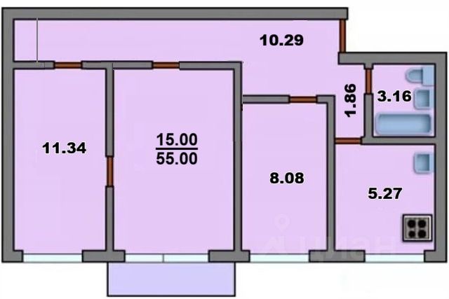 От года, комм. платежи включены (без счётчиков), комиссия 50%, залог 95 000 ₽
