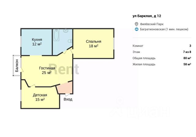 Доступно заселение на следующий рабочий день после обращения! Доступна к просмотру и бронированию! Просторная, светлая 3-комнатная квартира 3423, с множеством шкафов, евро- планировка (кухня-гостиная + спальня+ детская\кабинет + санузел с ванной и гостевой), с высокими потолками, площадью 71 м2, расположенная на двадцатом этаже нового арендного дома Матч Поинт. Доступна рассрочка оплаты депозита на 3 месяца! Без комиссии. Разрешено проживание с животными! Квартира с индивидуальным интерьерным решением в современном стиле, качественной отделкой, мебелью и техникой для жизни от ведущих брендов: - посудомоечная машина; - стиральная машина; - кондиционеры; - плазменный телевизор c функцией Smart-TV; - холодильник; - духовой шкаф. В квартире размещён полный комплект необходимой мебели европейского производства: - современный кухонный гарнитур; - обеденным стол и стулья на четыре персоны; - двуспальный раскладной диван; - двуспальная кровать с прикроватными тумбами и шкафом; - диван-кровать с выдвижным ящиком для хранения вещей; - письменный стол + стул + тумба; - шкаф. Услуги консьерж-сервиса 24/7 включены в арендную плату (прием корреспонденции, заявок на ремонт, заказ гостевых пропусков, и т.д.), дополнительно можно заказать: доставку воды, уборку, стирку, глажку, уход за животными и многое другое. Разрешено проживание с животными! Территория "Матч Поинт" закрытая, установлено видеонаблюдение и действует система электронных пропусков. В доме отапливаемая подземная парковка. Район с развитой инфраструктурой - вблизи множество парков, больниц, фитнес-центров, вузов и супермаркетов. Не менее развита транспортная сеть. Арендный дом расположен на Кутузовском проспекте: 10 минут пешком до станции метро "Багратионовская", в 5 минутах на автомобиле до Москва-Сити. Поблизости ТРЦ "Афимолл", "Филион", "Времена Года". Большой выбор парков для прогулок: Парк Победы, Филевский парк, Природно-исторический парк Москворецкий. Услуги 24/7 ВКЛЮЧЕНЫ В АРЕНДНУЮ ПЛАТУ! (прием корреспонденции, заявок на ремонт, выдача гостевых пропусков и т.д.). Удобный и доступный сервис дополнительных услуг: уборка, стирка, глажка, а также присмотр за животными и др. При заселении оплачивается стоимость аренды за первый месяц. При заключении договора аренды до 31 декабря доступна рассрочка оплаты депозита на 3 месяца! Дополнительно оплачиваются только счетчики коммунальных услуг. Аренда от ДОМ.РФ - это не просто квадратные метры. ДОМ.РФ создает единые стандарты качества арендного
