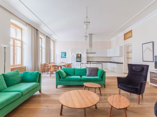 ID 32006. Стильная 3-комнатная квартира, расположенная в историческом доме, в престижном районе Чистых прудов - Лубянки. В квартире выполнен высококачественный ремонт по индивидуальному проекту с использованием натуральных материалов. Квартира предлагается полностью меблированной и оборудованной всем необходимым. Общая площадь 182 кв. м. Планировка: просторная гостиная с кухней, 2 изолированные спальни, 2 ванные комнаты, гостевой туалет, постирочная. Оснащена кондиционированием, бойлером, высокоскоростным интернетом, подогревом полов. Установлены стиральная, сушильная и посудомоечная машины, душевая кабина, тройные стеклопакеты. Окна выходят на 2 стороны. Установлен новый лифт и видеонаблюдение в подъезде. Парковка в закрытом дворе за дополнительную плату. Очаровательный район с бульварами, церквями, старинными особняками и развитой инфраструктурой. В шаговой доступности: многочисленные уютные кафе, продуктовые магазины, элитные рестораны, салоны красоты, музеи, театры и галереи, фитнес клубы, рядом французский лицей. Без детей и животных.