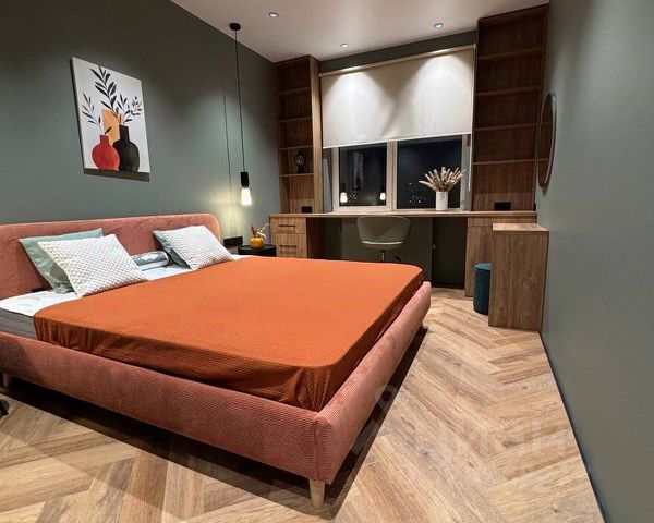 Вторая комната (кабинет / детская / гостевая): раскладной диван (двуспальное место), встроенная гардеробная, рабочее место, телевизор.