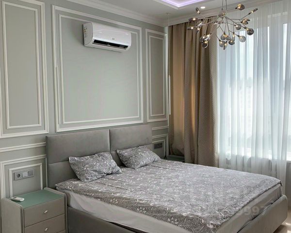 В квартире 3 комнаты (2 жилые и 1 кухня совмещенная с залом) и 2 ванные комнаты: 1 комната кухня объединенная с лоджией, 2 изолированные спальни, 2 сан узла (один с ванной, второй с душем), коридор. Просторная, светлая квартира с видом на реку. Выход на пешую набережную, на 1А охраняемая площадка для детей. Во второй спальне кресло кровать раскладное полноценное спальное место для взрослого, 2 шкафа. Квартира выполнена в классическом стиле в светлых тонах. Парковка наземная. Консьерж, охрана, красивая входная группа. Рядом инфраструктура.