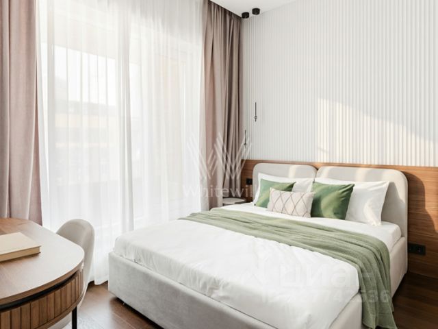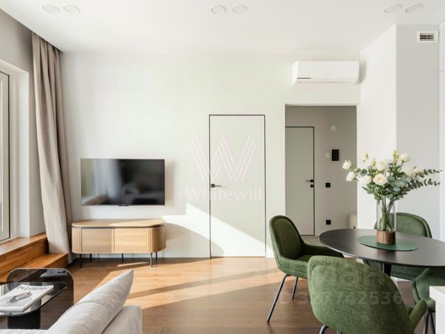 Квартира с 2 спальнями и террасой в комплексе бизнес-класса "ВАУ". Квартира общей площадью 60 м² расположена на 5 этаже в корпусе 2. Выполнена дизайнерская отделка в современном стиле. Интерьер построен на сочетании природных фактур и спокойной цветовой палитры: светлые стены, деревянные и каменные поверхности, текстиль в мягких зелёных и бежевых оттенках. Панорамные окна наполняют пространство светом и воздухом. Спланирована кухня-гостиная с обеденной зоной, мастер-спальня с ванной комнатой, вторая спальня, санузел с душевой, прихожая. Из гостиной и спален предусмотрены выходы на просторную террасу с видом на реку. Квартира полностью меблирована и оборудована бытовой техникой. На кухне установлена техника Weisgauff (варочная панель, духовой шкаф, вытяжка), холодильник Gorenje и посудомоечная машина Beko. В ванной — стирально-сушильная машина Candy. Во всех комнатах установлены кондиционеры Energolux. Освещение продумано до деталей: основное — от застройщика, дополнительные световые акценты — бра и подвесные светильники брендов Maitoni и Moderli. Главное о доме. Восемь корпусов образуют закрытый двор без машин, где вы занимаетесь йогой в саду камней, а дети прыгают на батуте в jump-зоне. Система "Умный дом" кипятит чайник к вашему возвращению и включает свет, когда ребёнок заходит в квартиру. Вы выбираете дизайнерскую отделку или создаёте интерьер в "хайфлэте" с потолками 5 метров, а из окна ванной наблюдаете за проплывающими по реке катерами. Ваш малыш ходит в детский сад на территории, а вы работаете в коворкинге с видом на воду. Главное о локации. Ваши дни проходят на полуострове, окружённом водой. Утром вы гуляете с собакой по набережной Москвы-реки, а после всей семьёй идёте в музей-заповедник "Коломенское" и гуляете по яблоневым садам. В выходной отмечаете День рождения в банкетном зале La Riva Hall у дома или ужинаете в ресторане Tematika food&wine. Здесь подают бесподобный тартар из тунца и предлагают разнообразные вина. Вы за 7 минут доходите до метро "Технопарк", а летом планируете маршруты на водном транспорте от Южного речного вокзала. Комментарий эксперта. Меня зовут Елизавета Никишина — брокер компании Whitewill. Я отвечаю за аренду этого лота. Свяжитесь со мной, чтобы получить расширенную презентацию, больше фотографий или договориться о просмотре. Могу провести экскурсию по локации и познакомить вас с этим домом. ID 4 965.