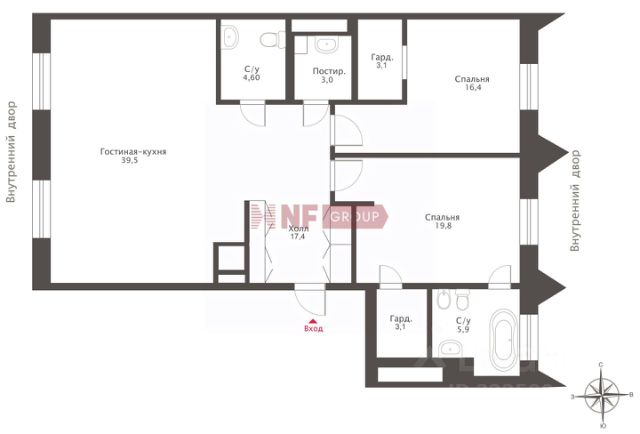 От года, комм. платежи включены (без счётчиков), без комиссии, залог 370 000 ₽