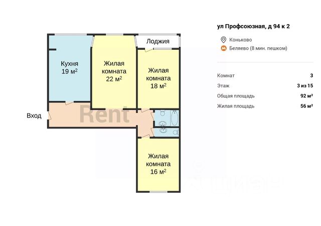 Предлагается в аренду на длительный срок видовая 3к. квартира общей площадью 77,4 кв.м. с просторными изолированными комнатами (19,14 и 13 кв.м.), кухней 10,3 кв.м., большим холлом.Из окон прекрасный вид на Коньковские пруды.В квартире выполнен дизайнерский новый ремонт с мебелью и техникой, в каждой комнате кондиционер. Дом расположен вдали от дорог и шума, при это в 7 минутах пешком до станции метро Беляево и в 10 ти минутах пешком до станции метро Коньково. Территория дома огорожена. В пешей доступности есть все необходимое для комфортного проживания : школы, детские сады, университеты, ТЦ, каток, бассейны, фитнес, МФЦ, ПВЗ, салоны красоты, кофейни, рестораны и многое другое из полезных сервисов. Примечание: у собственника могут быть дополнительные пожелания к жильцам, обсудите их в чате или по телефону.