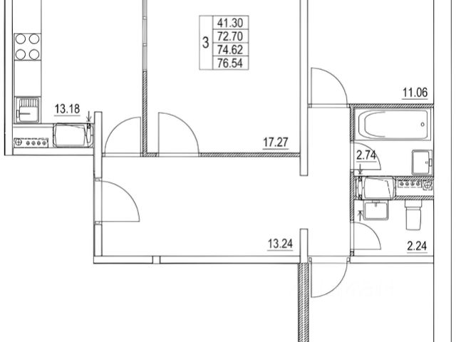 От года, комм. платежи включены (без счётчиков), комиссия 60%, залог 85 000 ₽