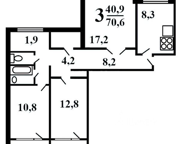 3-комн.кв. · 100 м² · 3/3 этаж