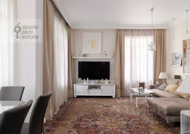 Презентабельный исторический особняк на Патриарших пудах, расположенный в одном из тихих и немноголюдных переулков! Консьерж, красивая входная группа. За дополнительную символическую плату, возможен паркинг во дворе, закрытом шлагбаумом. Квартира сдается без мебели! Имеется только один раскладывающийся диван и открытый шкаф в одной из спален. Что касается планировки, то квартира состоит из трех комнат. Просторная гостиная, дает ощущение пространства не только благодаря большой площади, порядка 70 кв.м., но и благодаря высоким потокам и большим окнам, смотрящим во двор. Из этой гостиной, с одной стороны расположен вход на кухню, с другой, противоположной, в изолированные друг от друга спальни. Санузел раздельный, угловая ванна, есть бойлер, стиральная машина. Кухня оснащена посудомоечной машиной, микроволновой печью и др. бытовой техникой. В квартире установлены кондиционеры, проведен интернет. Порадуют арендаторов и безопасность, развитая инфраструктура района, удобная транспортная доступность как на метро, так и на автомобиле, респектабельные соседи и окружение. Обращайтесь, показы по договоренности! 3-комнатная квартира в переулке Трехпрудный в Москве.