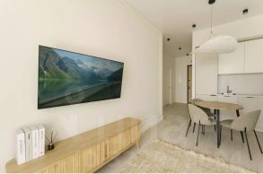 В каждой комнате есть выводы под смарт-ТВ. Вся мебель и техника новые. В коридоре установлен кондиционер с рассчитанной мощностью на всю квартиру.