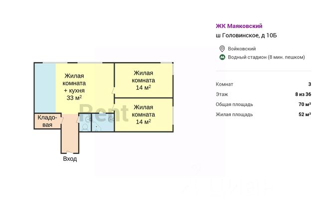 От года, комм. платежи включены (без счётчиков), без комиссии, залог 220 000 ₽