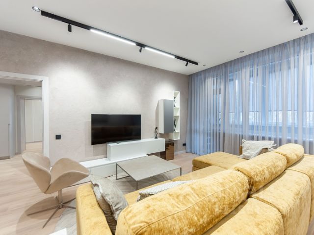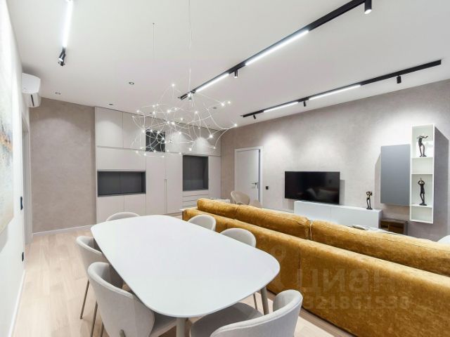 Квартира полностью меблирована: встроенная кухня, двуспальные кровати, диваны, шкафы, в т. ч. встроенные с зеркалами, много мест для хранения. Есть современная бытовая техника: посудомоечная машина BOSCH, холодильник, духовой шкаф, микроволновка, кофемашина BOSCH, ЖК-телевизор, робот-пылесос, стиральная машина и другое. Хороший напор воды.