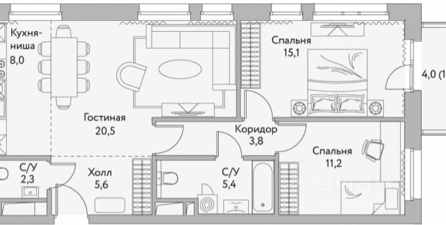От года, комм. платежи включены (счётчики включены), без комиссии, залог 100 000 ₽