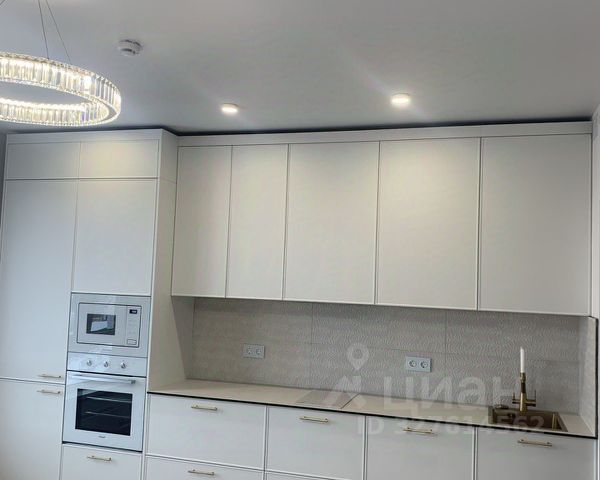 Просторная кухня со стильным эркером (встроенная кухня Мария, столешница - натуральный камень), площадью 15 кв. м полностью меблирована и оснащена всей необходимой техникой - холодильником, посудомоечной машиной и кондиционером. Духовой шкаф и микроволновая печь - в составе острова, на другой стороне кухни.
