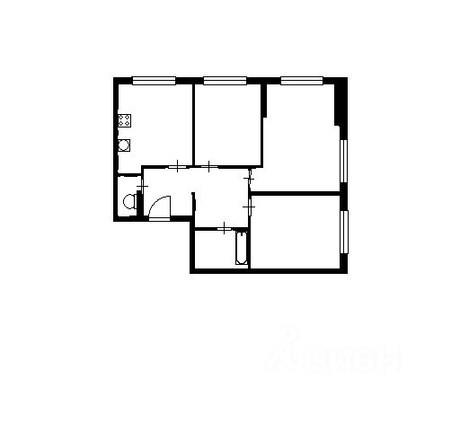 Две изолированные комнаты (~12 м² каждая), разделённые коридором: