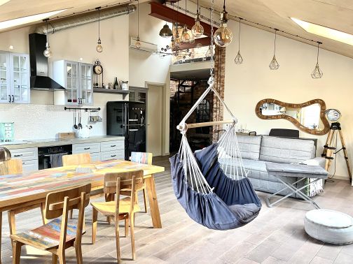 Очень просторный лофт мансарда 130 кв.м с ВЫСОКИМИ ПОТОЛКАМИ 5 метров (на фото не передать), основной зоной 53м, просторной спальней и спальной зоной на 2 этаже. Эксклюзивная отделка, итальянская мебель, столовая из тика, пол немецкий дуб, техника smeg, pioneer, домашний кинотеатр, проектор в спальне, сантехника Villeroy & Boch, 18 итальянских окон Velux с видами на звёзды. Есть всё необходимое для комфортного проживания, все аксессуары, кухня, чайная церемония и т д Стены 3м ощущение, что живешь один. Тишина, воздух и простор. Ощущение загородного дома!! Шикарная транспортная доступность, 12 мин по набережке до Кремля. Сдаётся на короткий и на долгий срок! Есть опция снизить аренду если мало личных вещей.