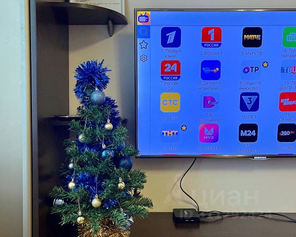 В третьей комнате диван, шкаф, телевизор, кондиционер.