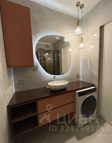 Основной санузел 3,9 м² — с ванной, стиральной машиной, шкафом с подсветкой и полотенцесушителем. Гостевой санузел 1,4 м² — компактный, но полностью оборудованный.