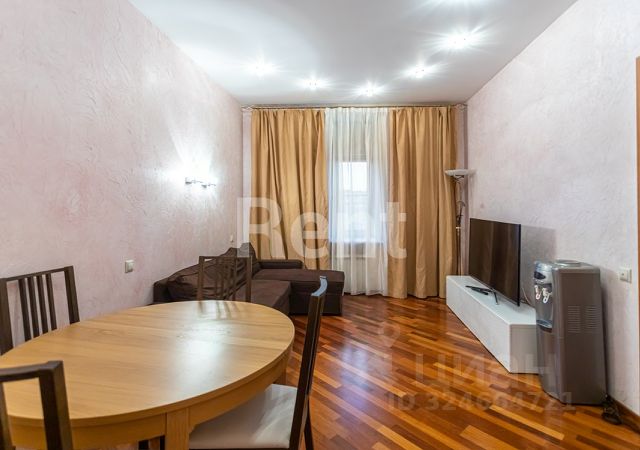 • Гостиная: лаунж-зона с пуфиками — подходит и под новогоднюю ёлку, и под небольшой фуршет, и под создание собственного пространства (у нас уже жила девушка-блогер, делала тут контент-зоны).