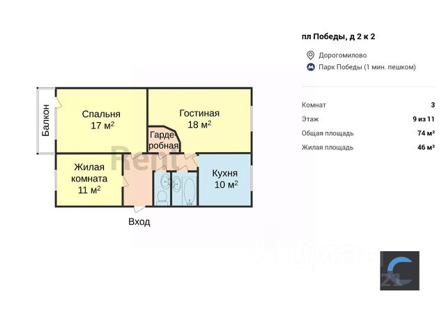 • Общая площадь — 78,8 м² (план квартиры прилагается)